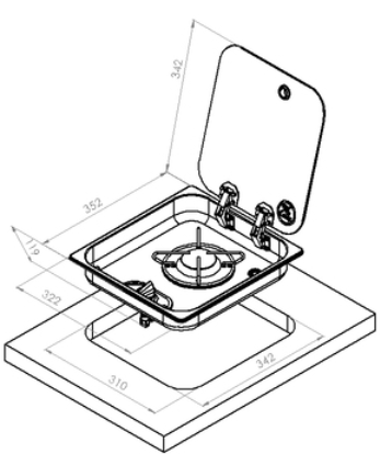 Com este fogão poderá aproveitar ao máximo o espaço da campervan. Os tampos de vidro de segurança fazem com que ao estar fechados se possa trabalhar sobre eles ou apoiar objetos.