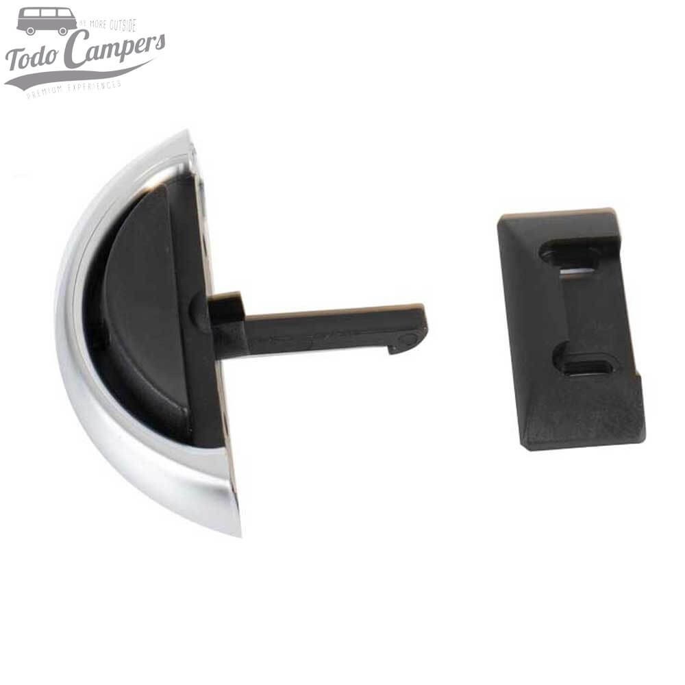 Esta pequena asa é perfeita para gavetas. Poderá mantê-las fechadas enquanto conduz, graças ao seu fecho com retentor. Para abrir o móvel, basta pressionar o botão, que aciona uma alavanca que solta a gaveta.
