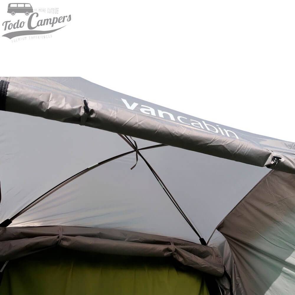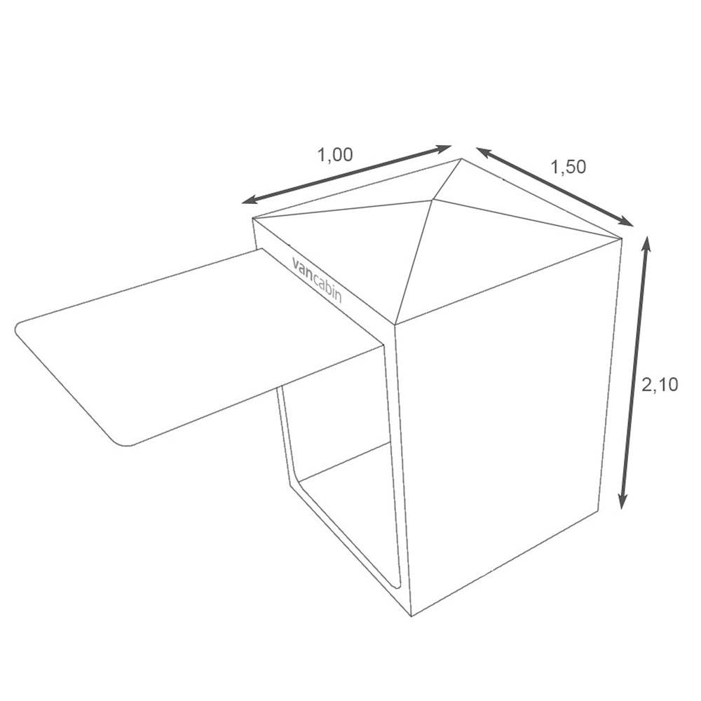 Os laterais da cabina incluem um velcro vertical para a fixar à carrinha. Não incluimos o velcro que se cola no interior do veículo para que possa escolher a cor que melhor se adapte à sua campervan.