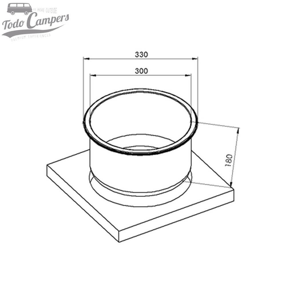 - Dimensões totais (Diâmetro x Altura): 330 x 180 mm.