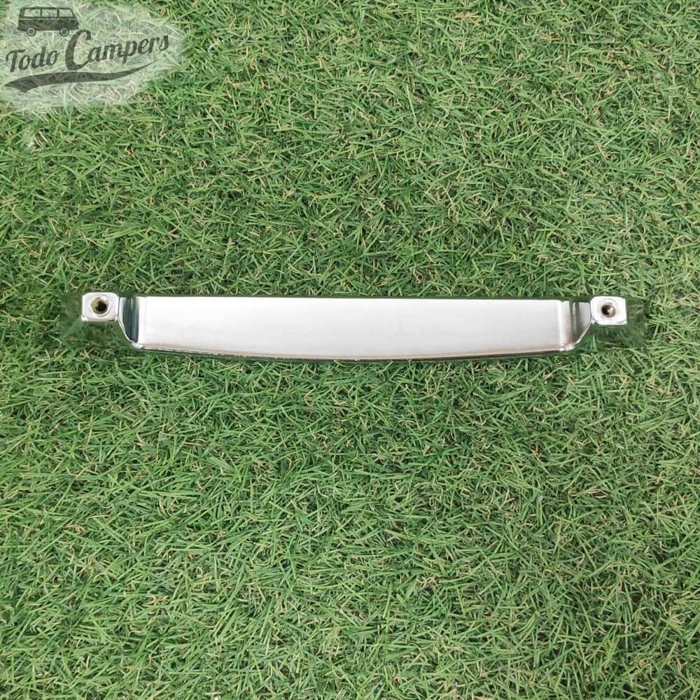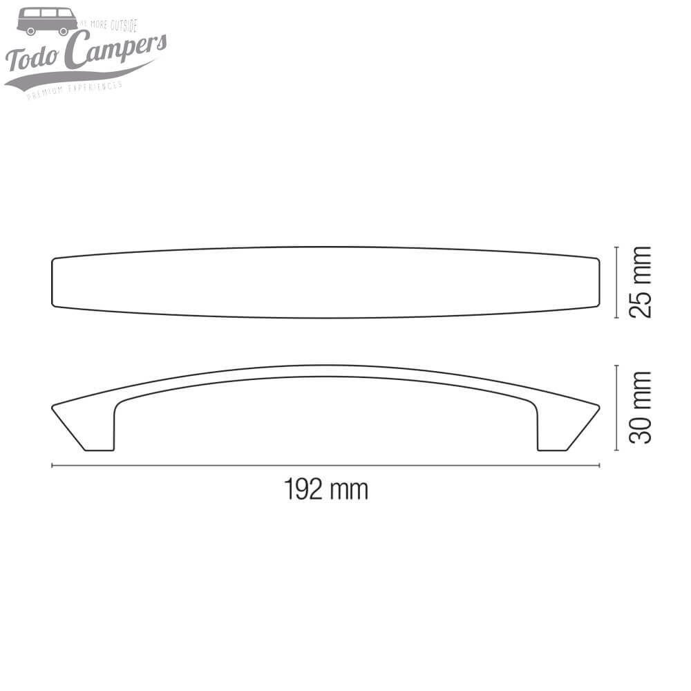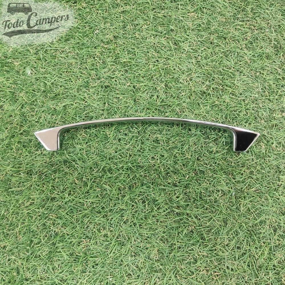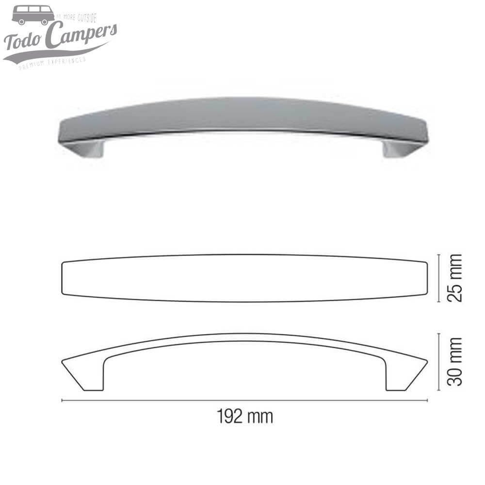Prático puxador de cor cromo brilhante. Este puxador mede 192 mm, sendo um dos mais longos do nosso catálogo.