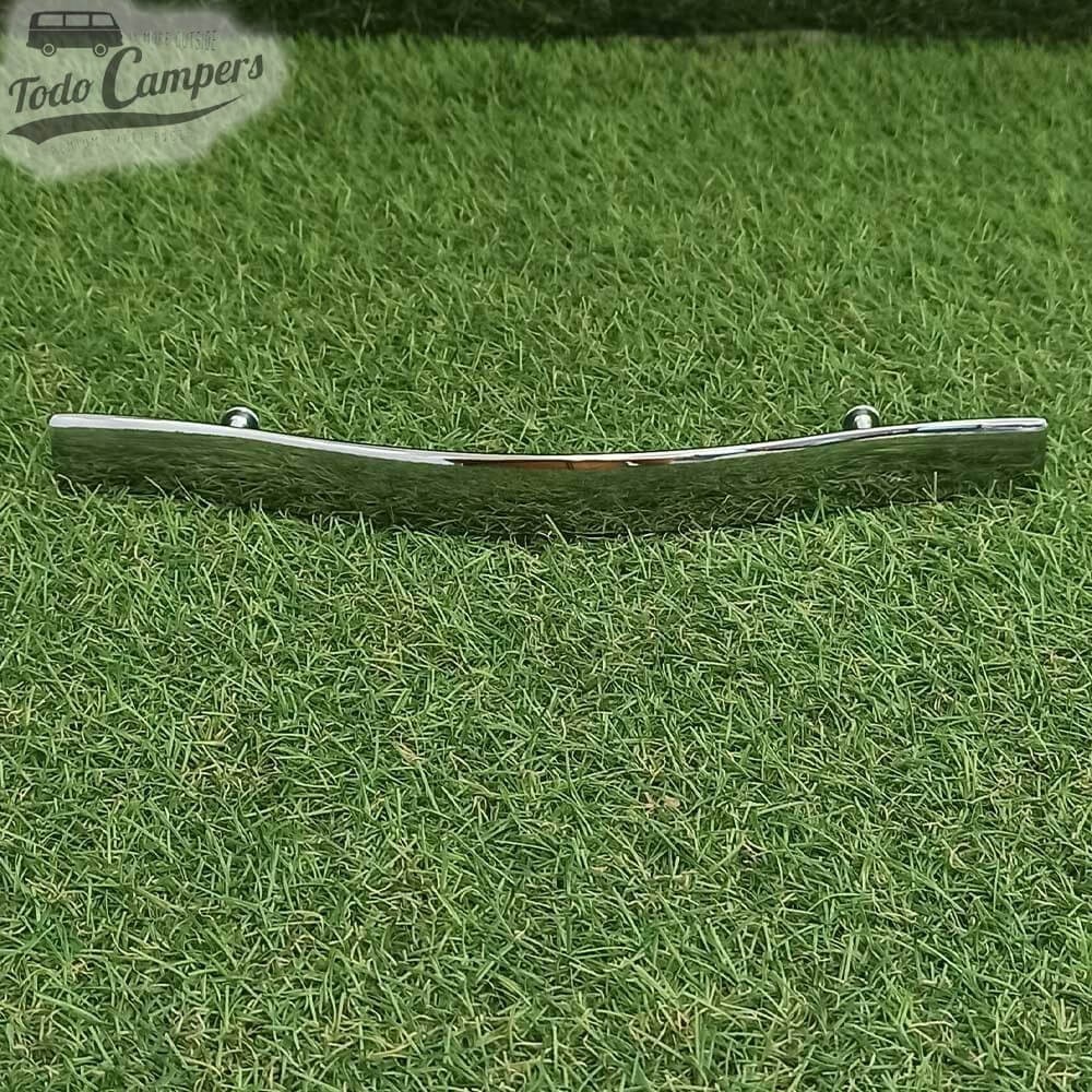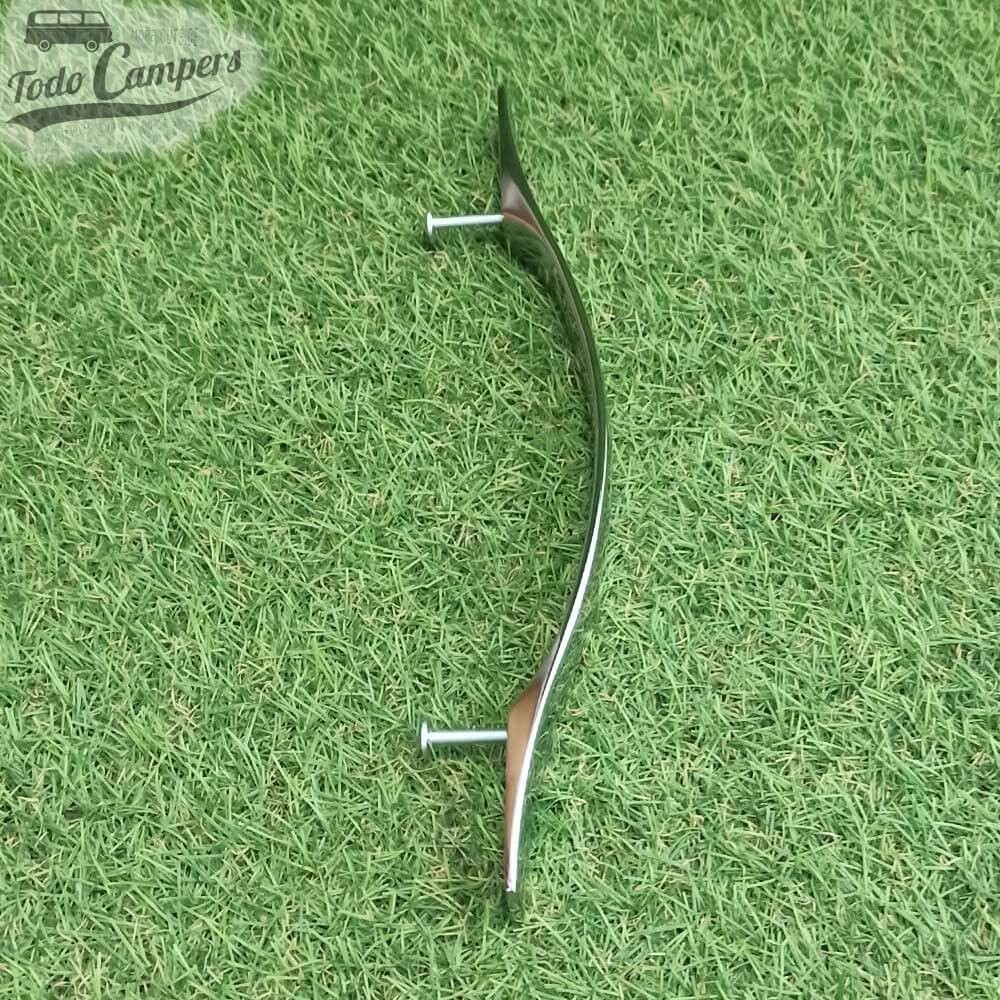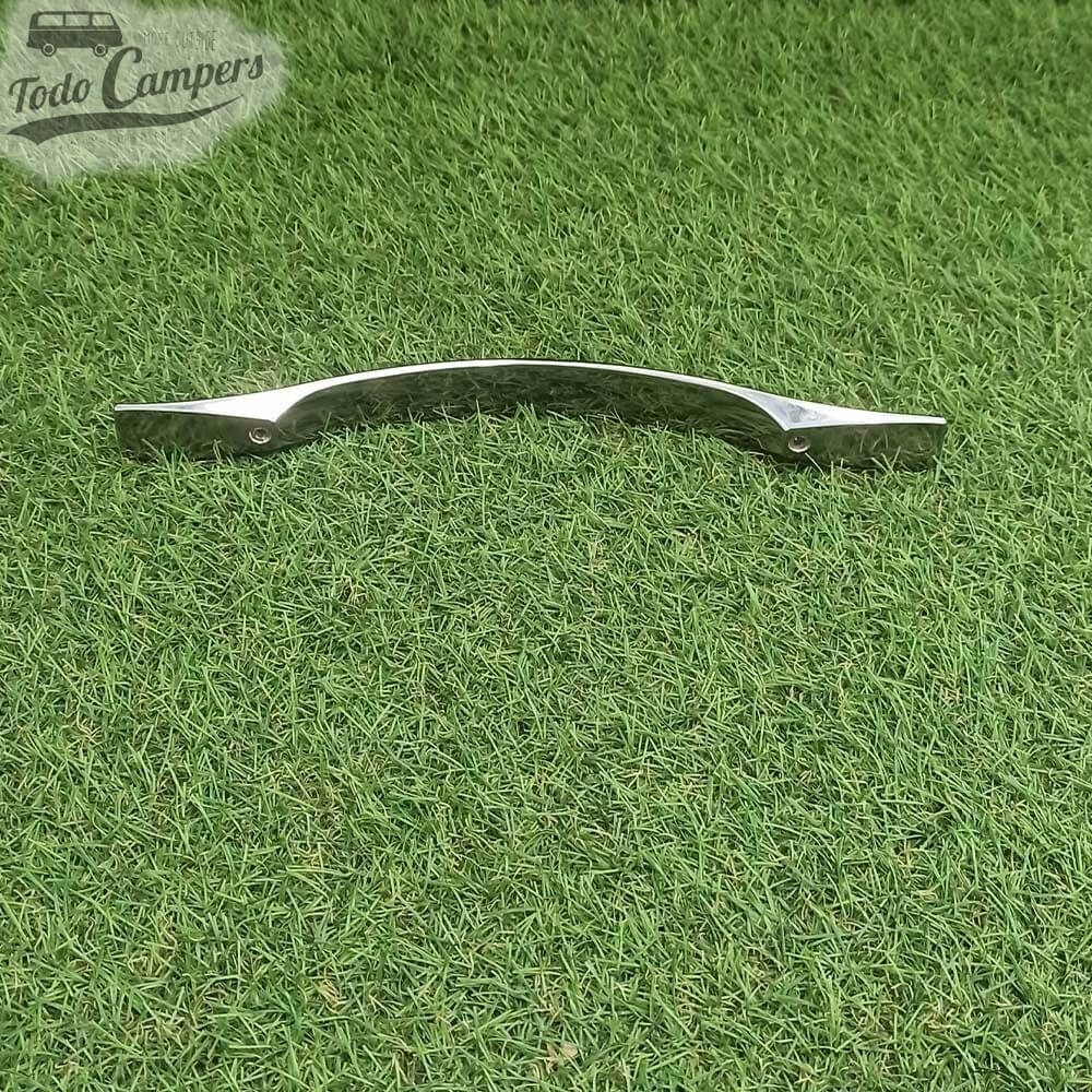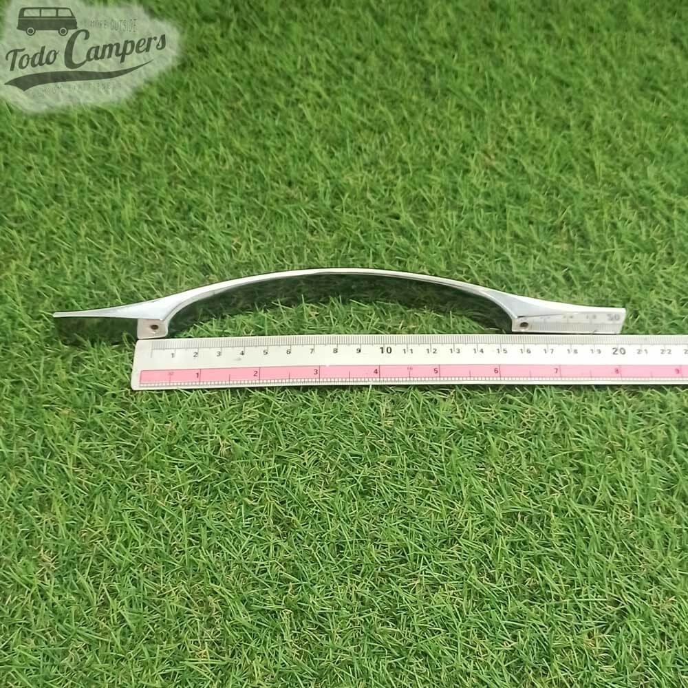 Prático puxador de cor cromo brilhante. Este puxador mede 245 mm, sendo um dos mais longos do nosso catálogo.