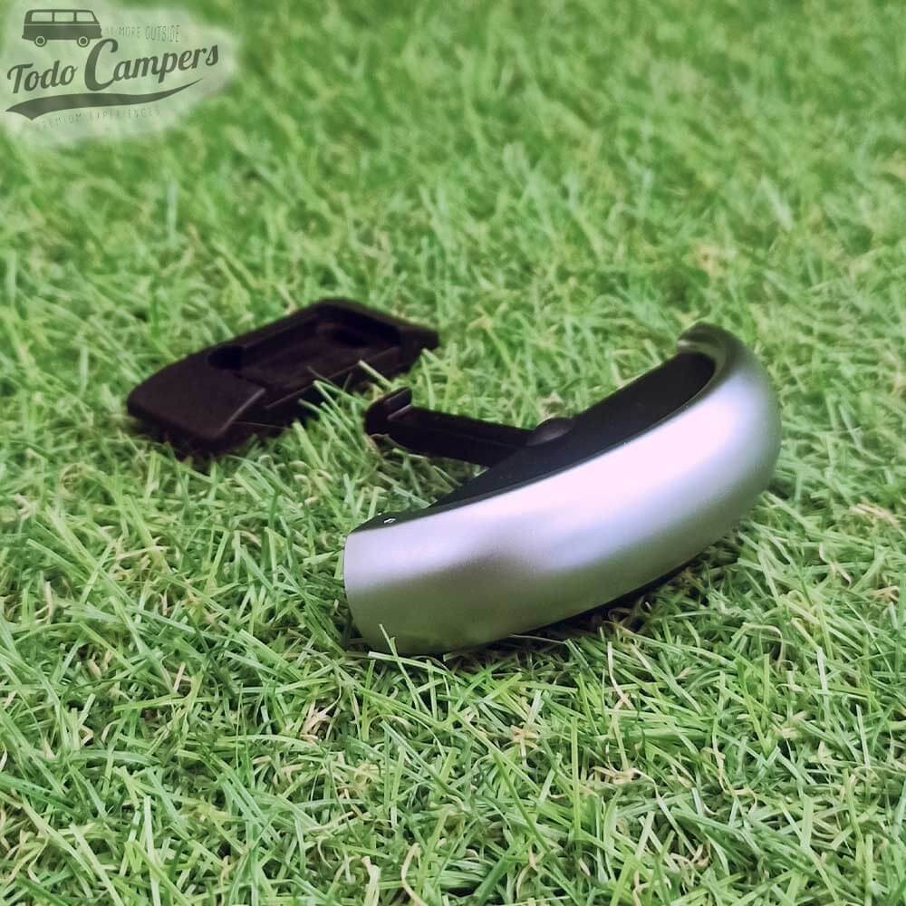 Manípulo de botão para portas e gavetas de cor prata e preto.