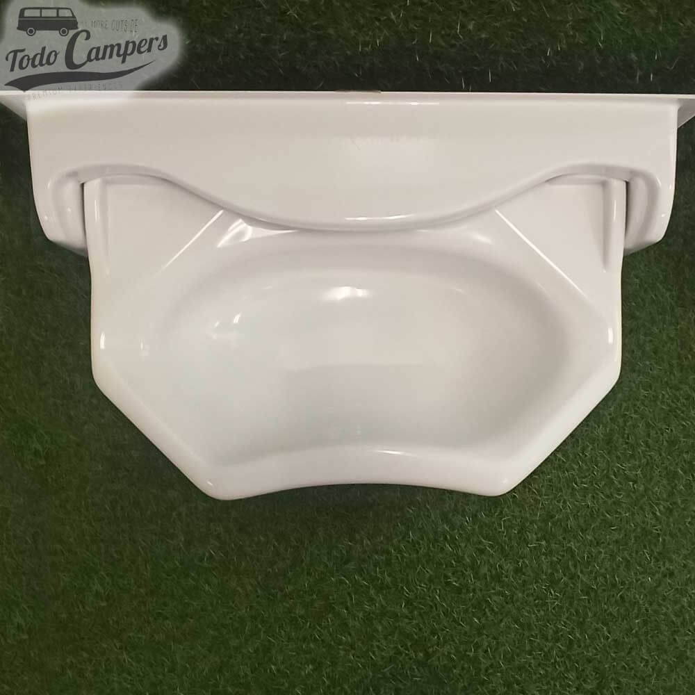 - Lavatório removível cego, sem orifício de drenagem. Para esvaziá-lo, é necessário incliná-lo para que a água caia na base fixa à parede (que é onde está o sistema de escoamento). É desmontável e pode ser separado fisicamente da base.