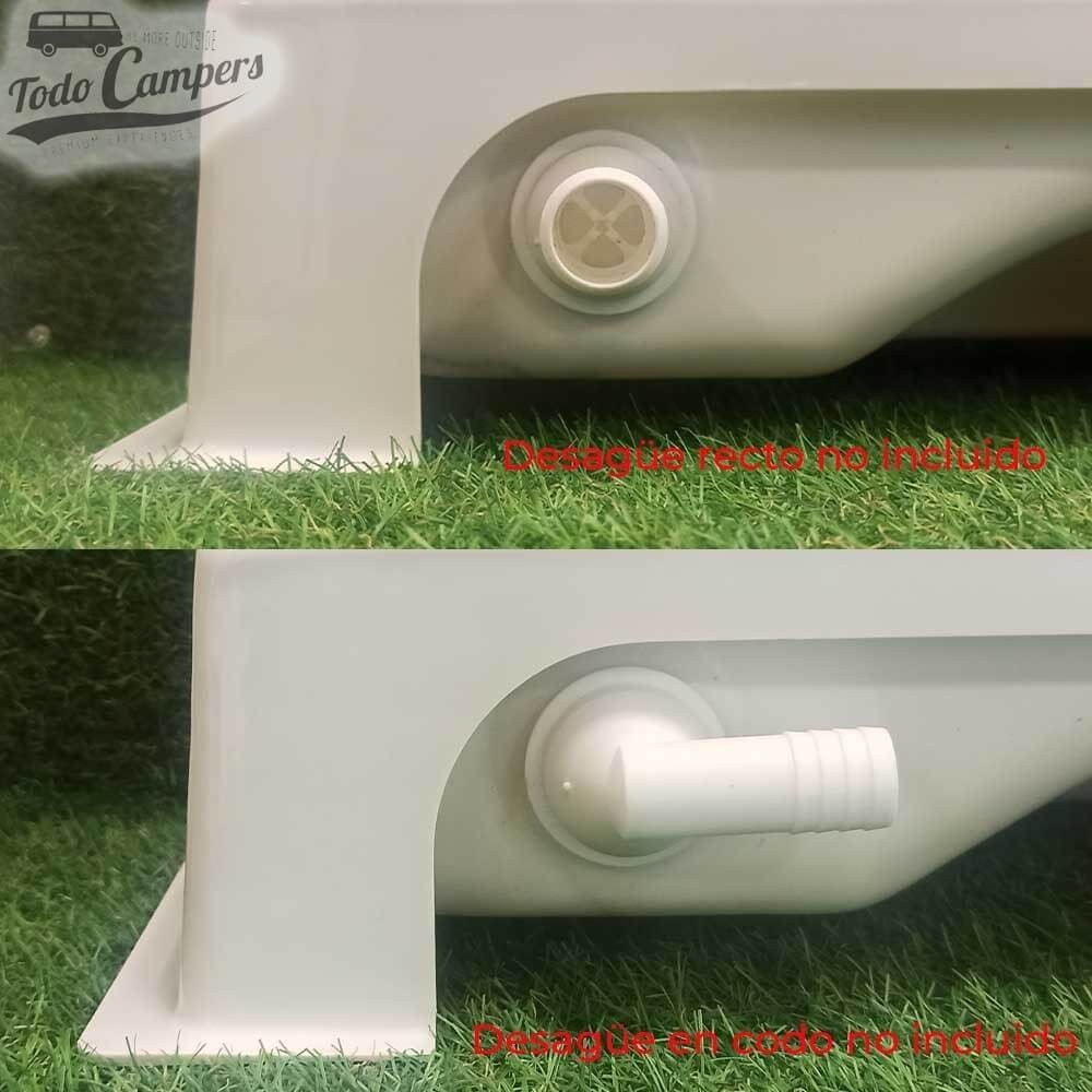 - Base fixa, desenhada em curva para que, ao remover o lavatório, ele possa ser guardado na própria base. Possui, numa extremidade, o orifício de drenagem (válvula não incluída).