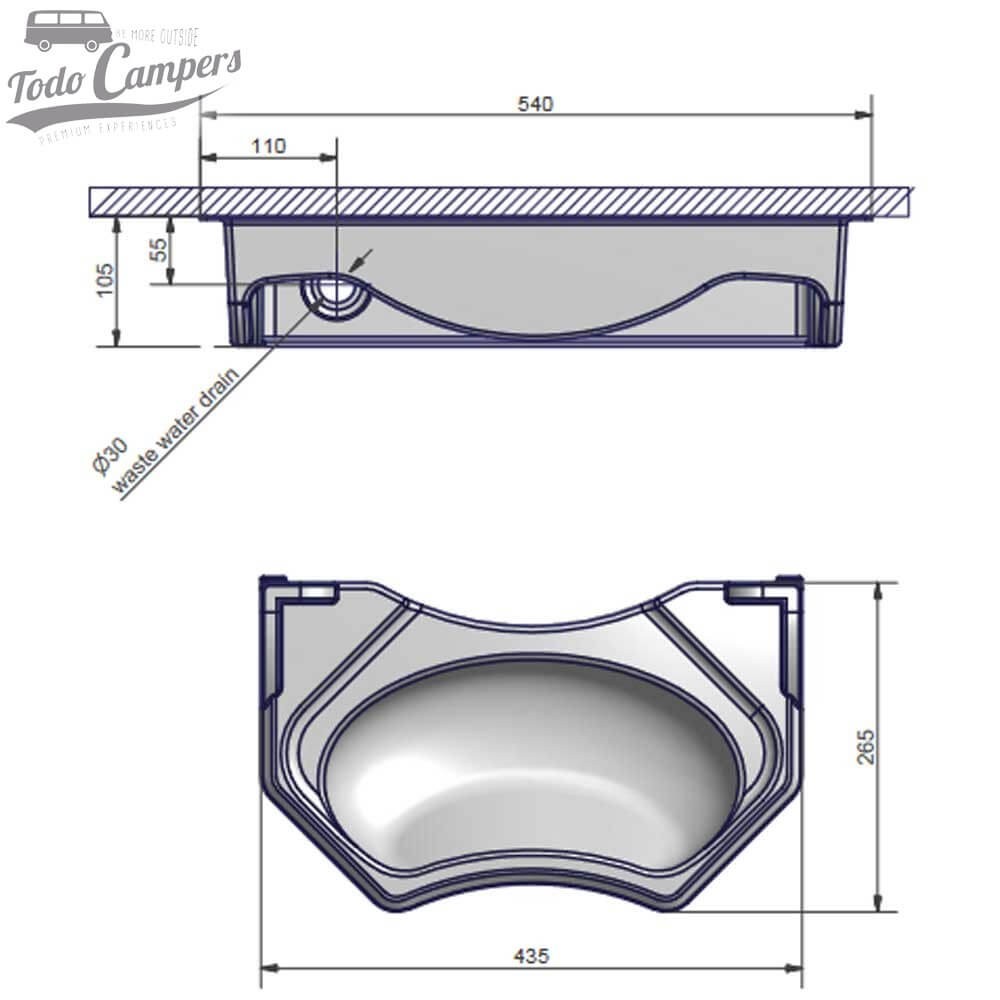 Lavatório dobrável fabricado em 2 peças de plástico polietileno de alta qualidade, resistente a impactos
