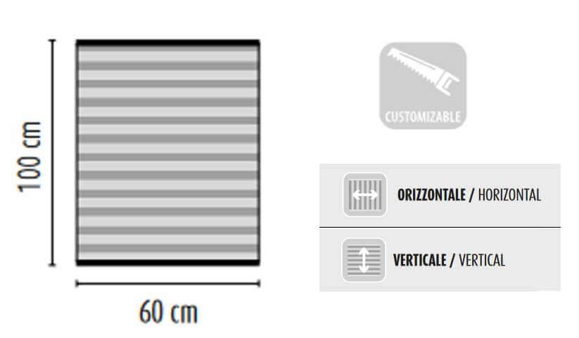 - Persiana de 100 x 60 cm com lâminas de 1,8 cm de altura.