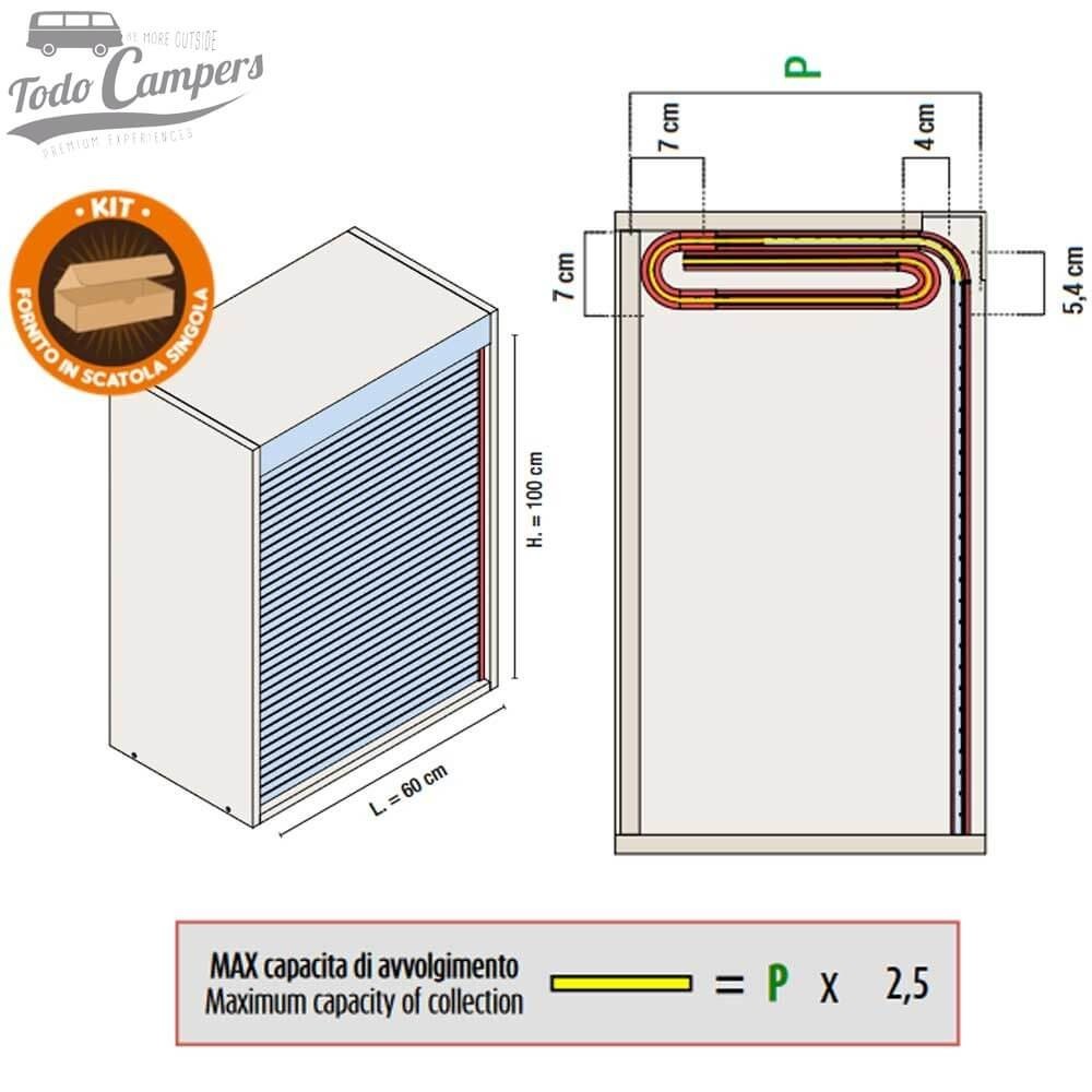 • Kit de persiana enroável para fechar os seus móveis de campismo com um acabamento profissional.