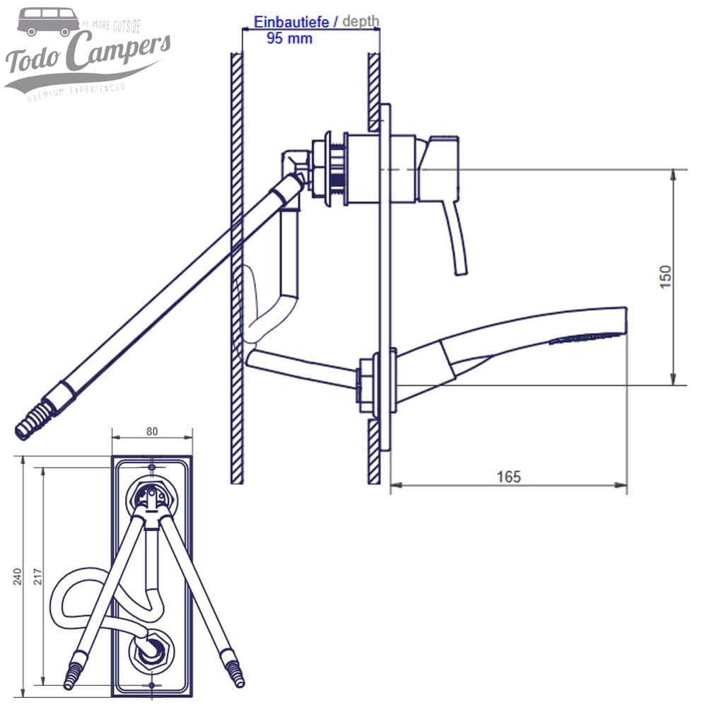 A linha de torneiras Capri possui um microinterruptor automático que deteta quando a torneira é aberta e ativa a bomba de água. Funciona em sistemas de 12V e é compatível tanto com bombas de pressão como com bombas submersíveis de até 3 bar.