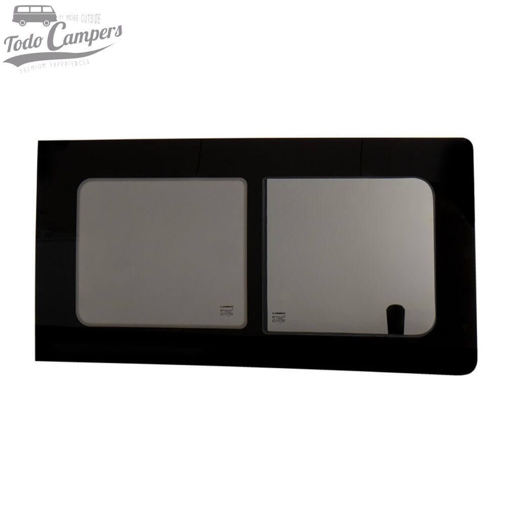 Janela de correr substitutiva dos vidros originais de segunda fila (acompanhante) de Ford Transit Van desde 2014. Se tiver uma Transit com chassis V363 sem janelas de segunda fila, poderá escolher entre colocar um vidro fixo ou esta janela com abertura.