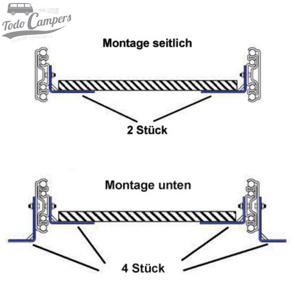 São vendidas aos pares (lado direito e lado esquerdo) e baseiam-se num design em L para serem fixadas ao chão da sua campervan ou autocaravana.