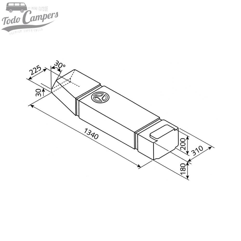 Medidas Depósito de água exterior Volkswagen T3 - 60L. Depósito de águas limpas e cinzentas para a sua carrinha