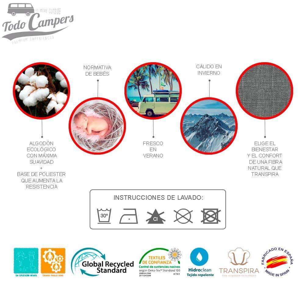 - Desmontável graças ao fecho de correr que leva na lateral, com o qual se consegue uma fácil abertura para a sua lavagem.