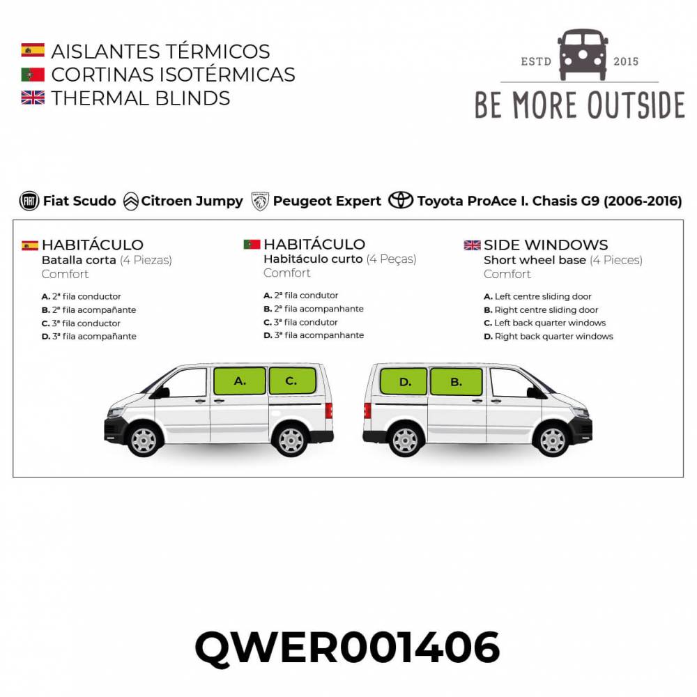 É importante selecionar corretamente o modelo da sua carrinha, pois a terceira fila tem janelas de diferentes tamanhos segundo a distância entre eixos da viatura e consequentemente as cortinas também.