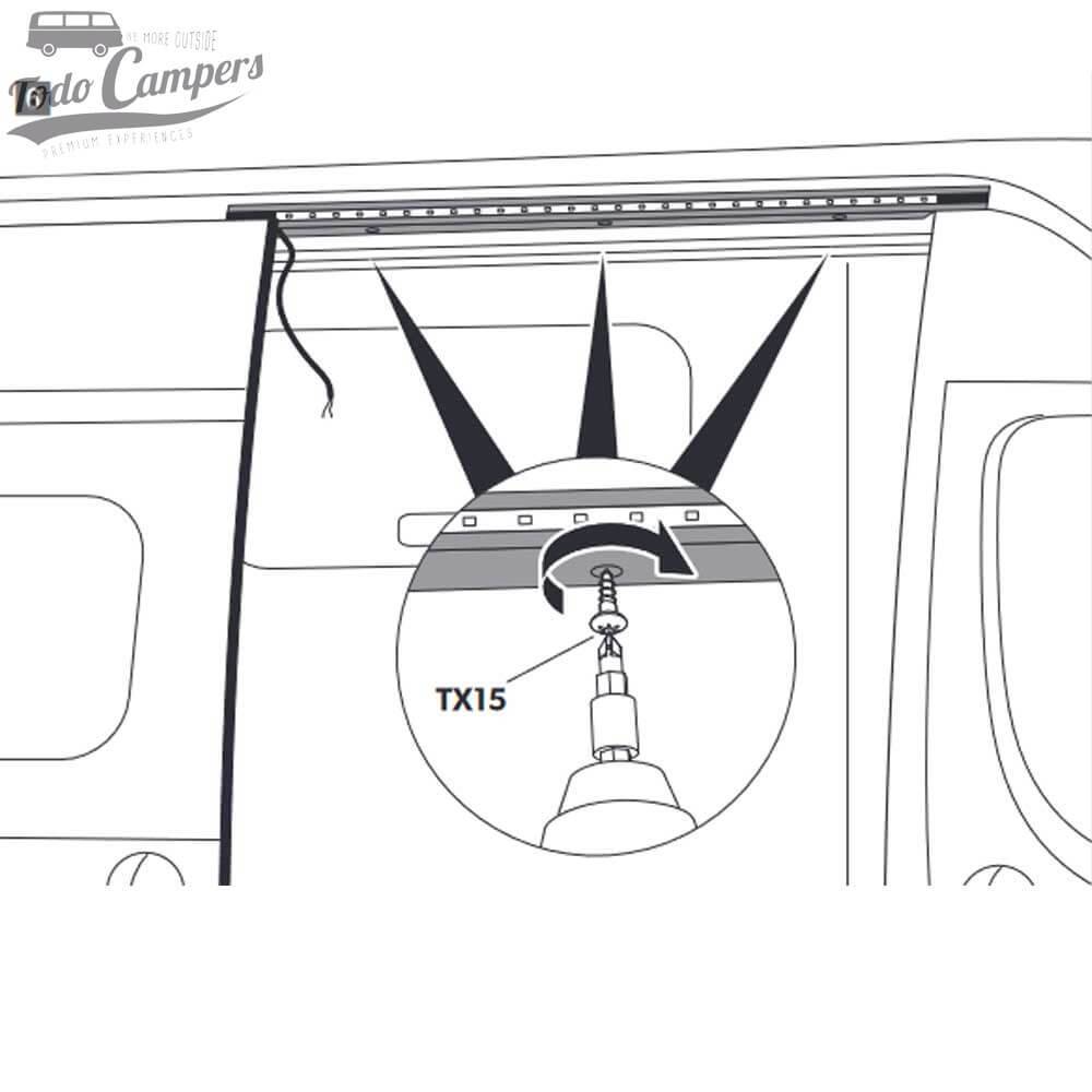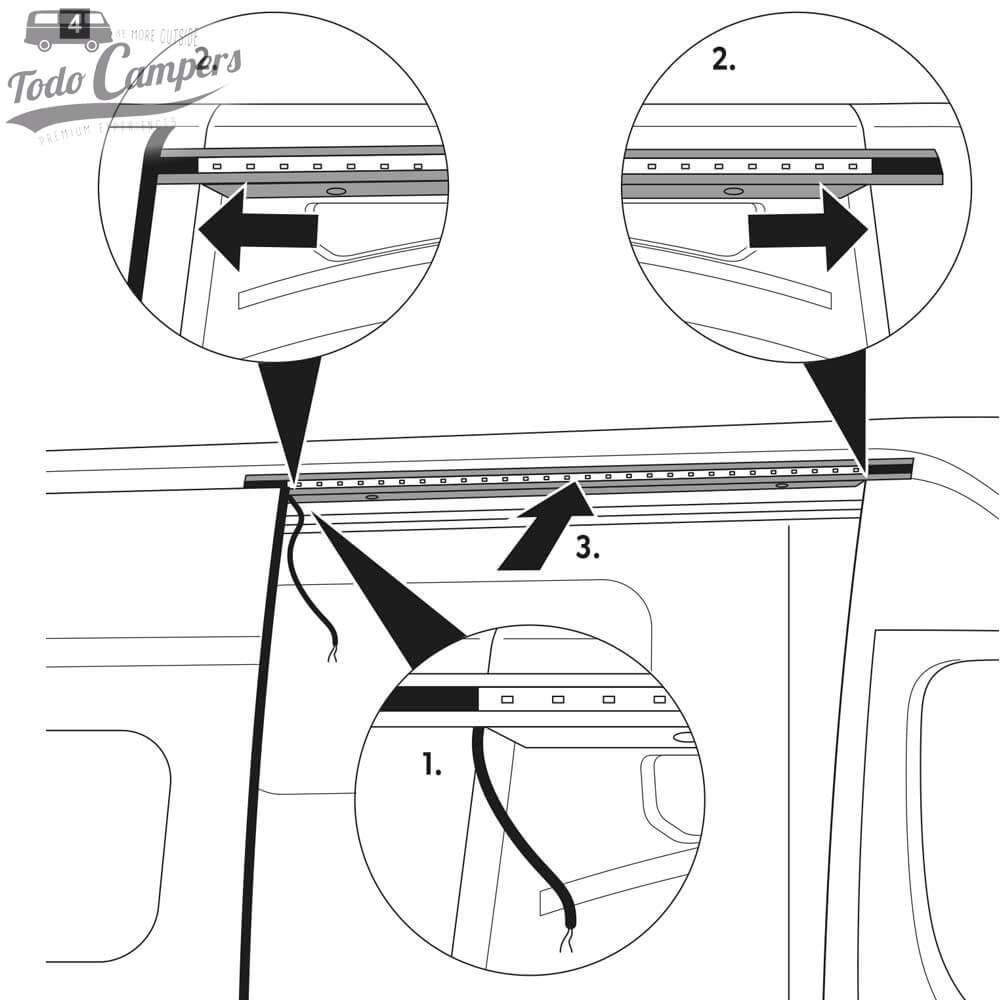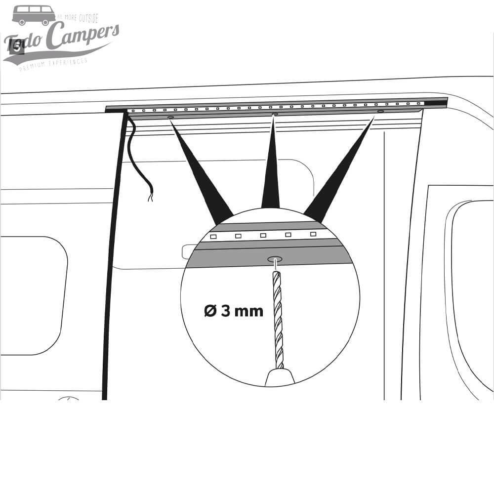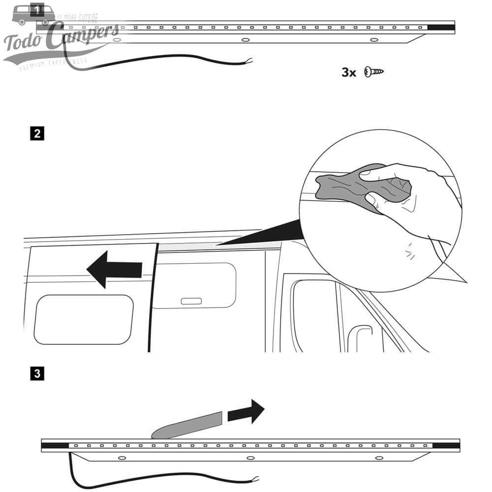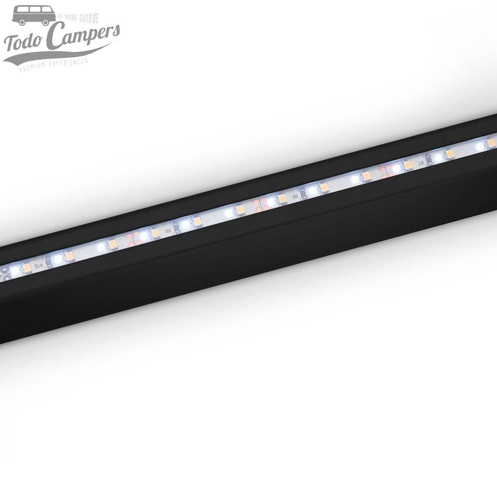 Mas o melhor de tudo é o quão prático é, visto que inclui uma tira led de baixo consumo e intensidade regulável com a qual conseguirás iluminar toda a zona exterior da carrinha.