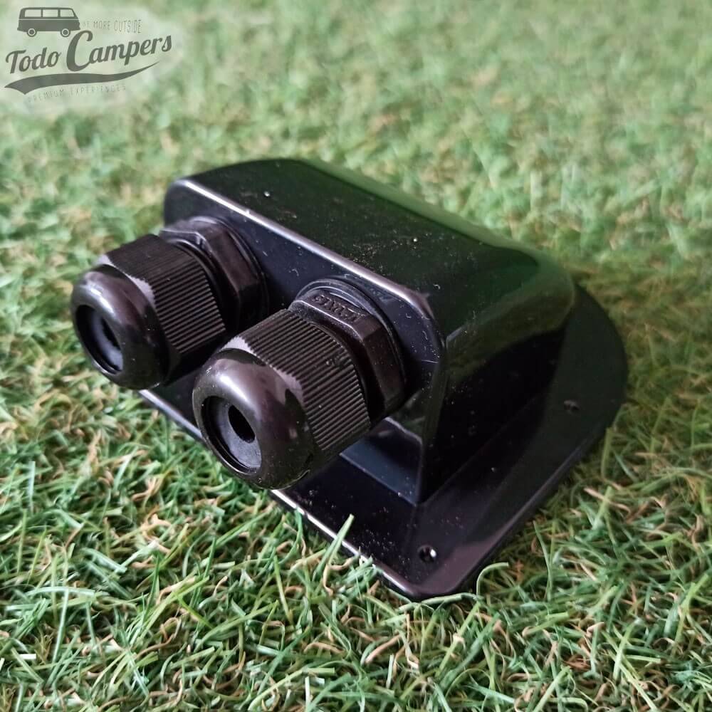 Com este passa-fios preto de duas vias para painéis solares poderá passar os cabos do seu painel solar através do teto do veículo de maneira estanque e segura.