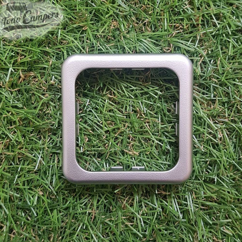 Moldura simples para tomada ou interruptor. Disponíveis em cinzento claro, branco, cinzento escuro, castanho e cinzento prateado.
