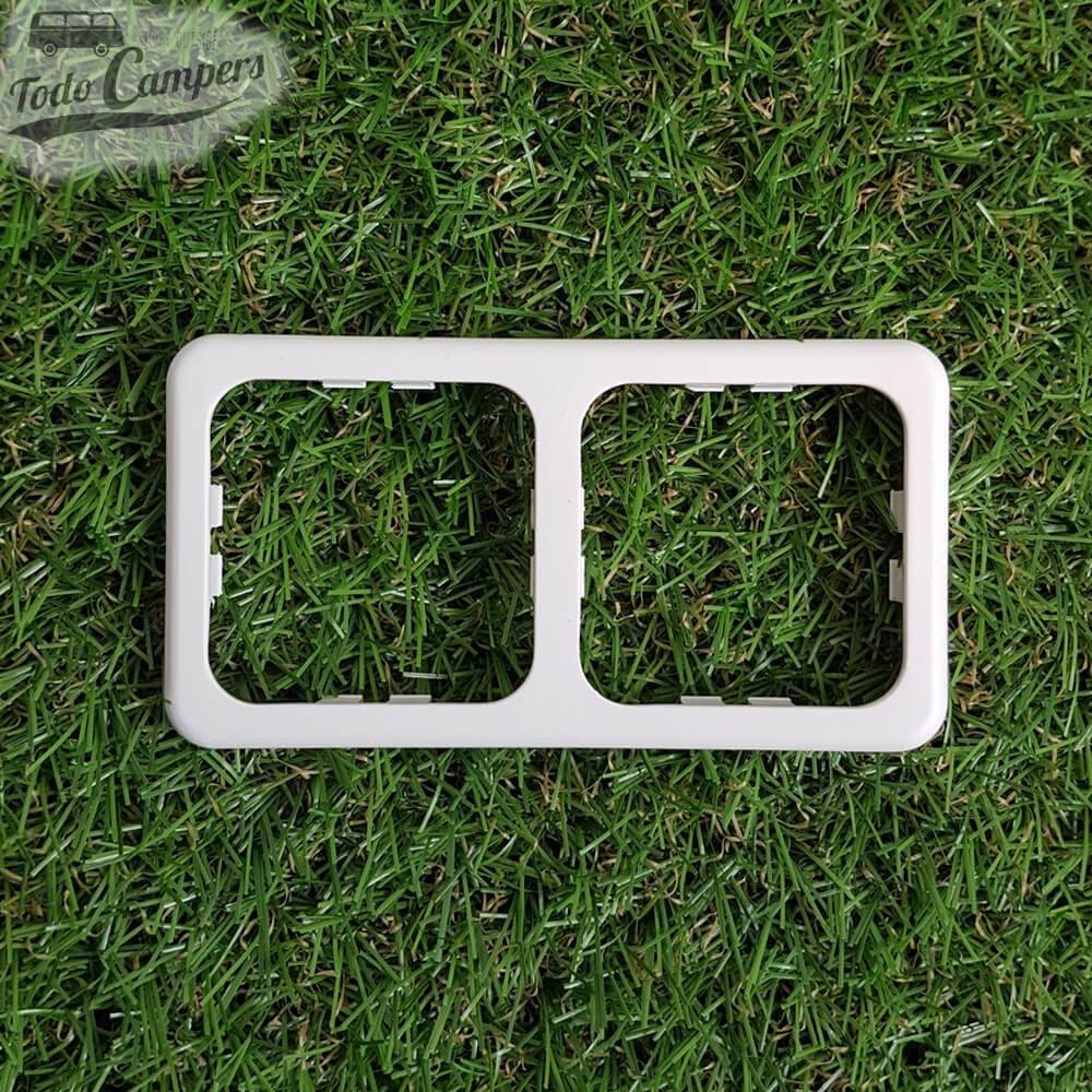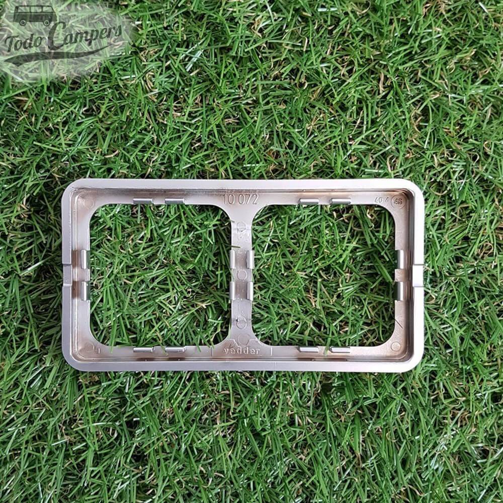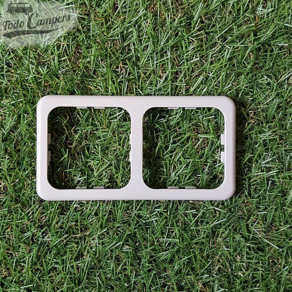 Moldura dupla para tomada ou interruptor. Disponíveis em cinzento claro, branco, cinzento escuro, castanho e cinzento prateado.