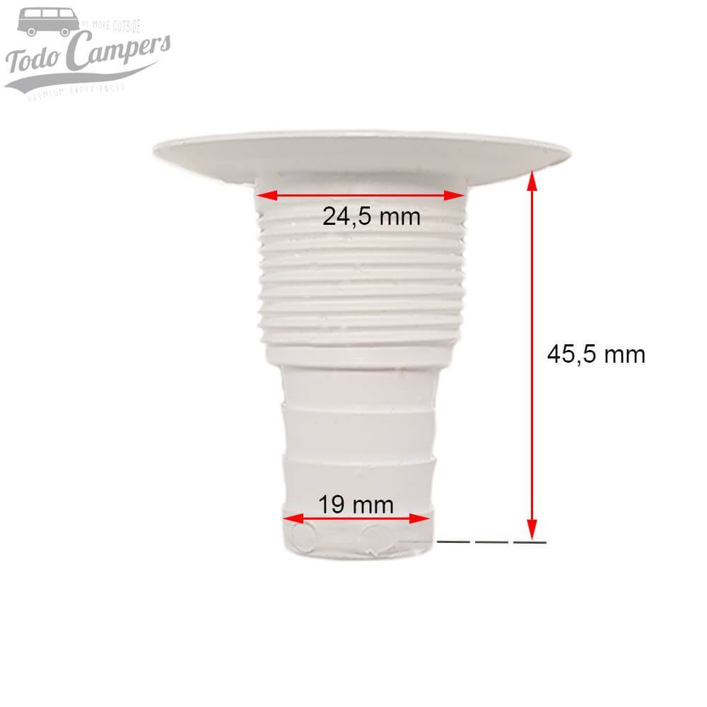 Válvula direita de plástico com saída para mangueiras de diâmetro Ø 19 mm.