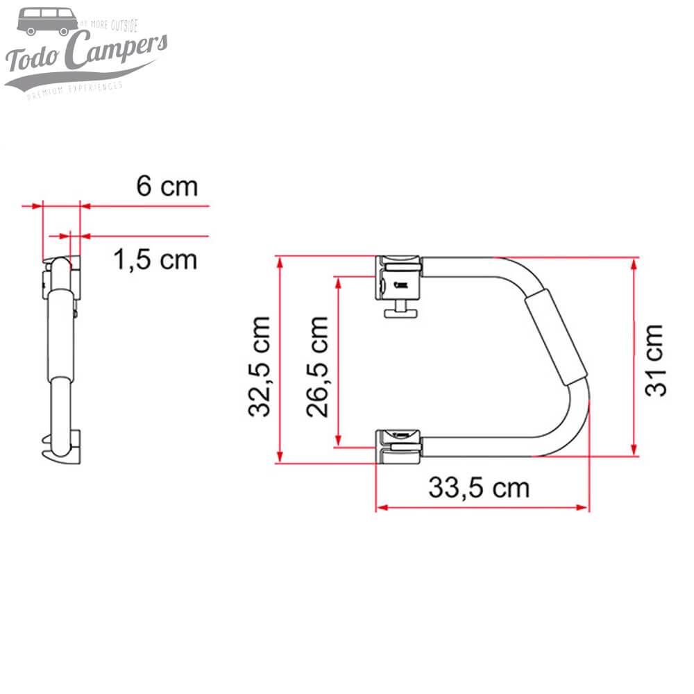 Asa de segurança Security 31 da Fiamma, fabricada em alumínio lacado de Ø 30 mm e 2 mm de espessura, cor branca. Ideal para uma proteção antirroubo extra na nossa caravana ou autocaravana e um agarre para subir e/ou descer mais comodamente do veículo.