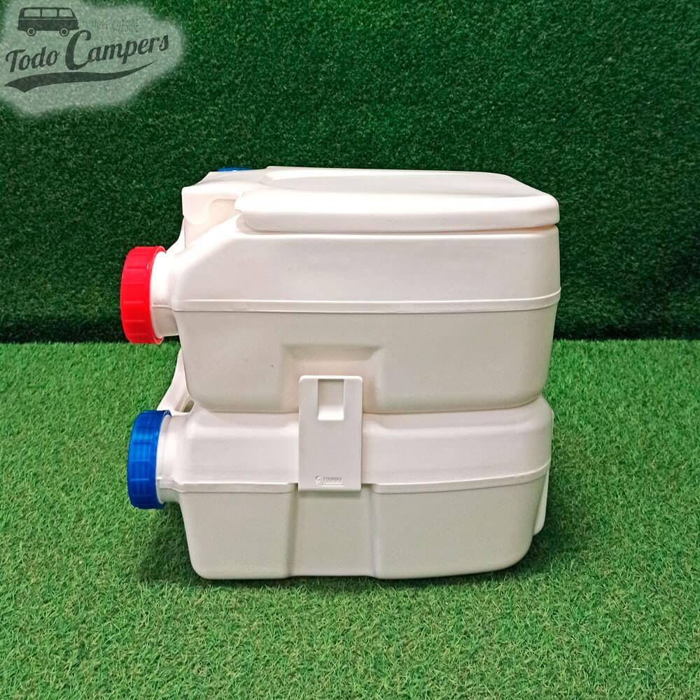 - Têm um depósito em baixo (chamado de águas cinzentas ou negras) onde se acumulam os resíduos. Neste depósito é onde se verte o líquido azul ou pastilhas que dissolvem os sólidos para os eliminar mais facilmente.