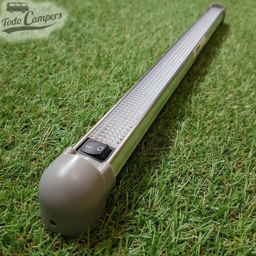 Aplique luminoso LED de alumínio com interruptor. Com os seus 30 LEDs (4,8 W) poderá iluminar facilmente a sua carrinha ou autocaravana. É de uma elegante cor cinzenta que combinará com tudo.