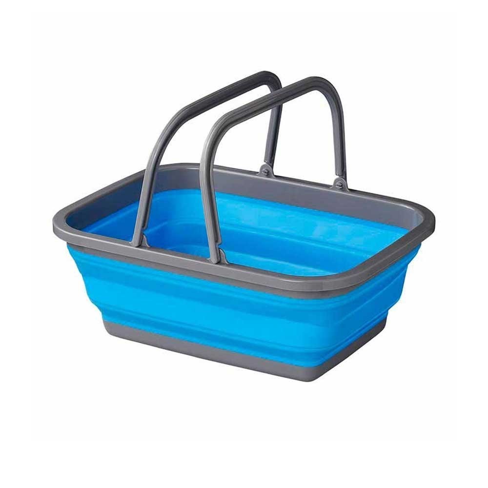 O cesto dobrável de silicone azul é uma opção prática para todas as suas necessidades num espaço reduzido.